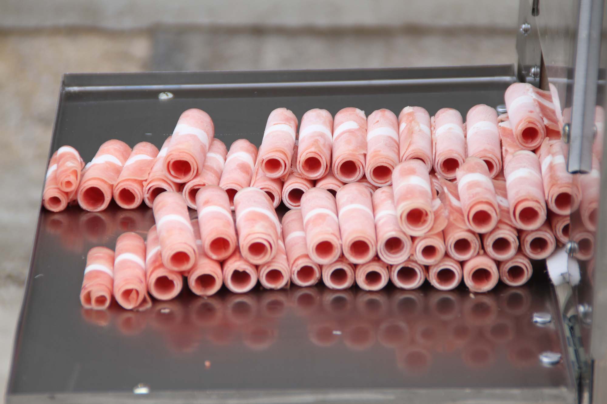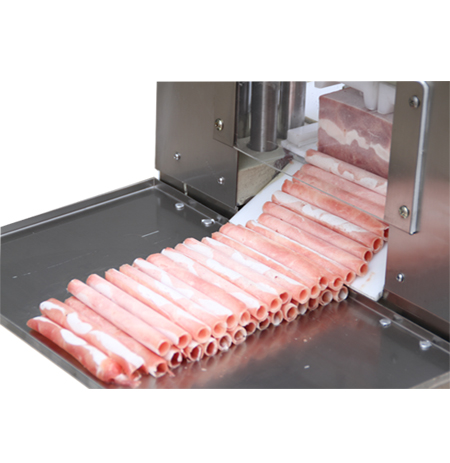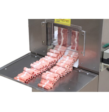 鴻祥瑞數(shù)控切片機(jī)HXR-S2型一次可以切2卷(板)羊肉或肥牛,鴻祥瑞數(shù)控切片機(jī)采用西門子PLC控制,步進(jìn)電機(jī)傳動,徹底解決了機(jī)械切片機(jī)故障率高的難題,真正意義上實現(xiàn)了全自動化。紅外線感應(yīng)安全防護(hù)裝置(選裝),公司通過市場調(diào)研,特研發(fā)一次性刀具,解決部分客戶磨刀難的問題。雙導(dǎo)向推進(jìn)器,自動進(jìn)退,起刀高度18CM,可以立著切肥牛板,調(diào)整厚薄不用停機(jī),可根據(jù)所需要的厚度在數(shù)控開關(guān)自動加減,每小時可切肉50-100公斤,工作臺采用食品專用有機(jī)塑料板制成,保證食品安全、衛(wèi)生,肉卷無需解凍,可直接上機(jī)操作,并可切出多種卷形(粗卷、細(xì)卷、長卷),成形整齊、美觀,并成排列狀,容易包裝,加工效率高、安全、節(jié)省人工。是大型火鍋店、大中型牛羊肉批發(fā)商的理想選擇。