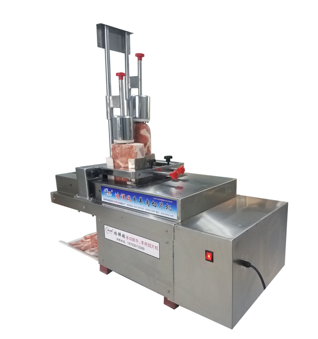 切片效率高: 更換肉卷不停機,每小時100-200斤;更適合切各種不規(guī)則的凍肉;